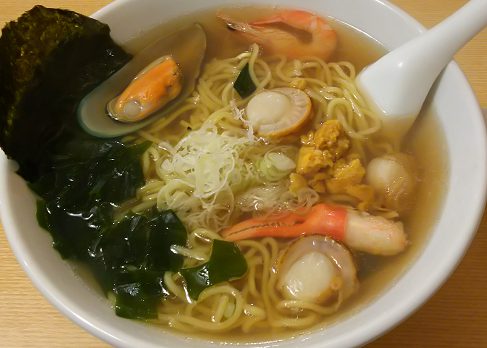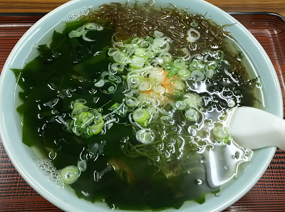 海藻をたっぷり載せた塩ベースのあっさりしたラーメンは浜の味。