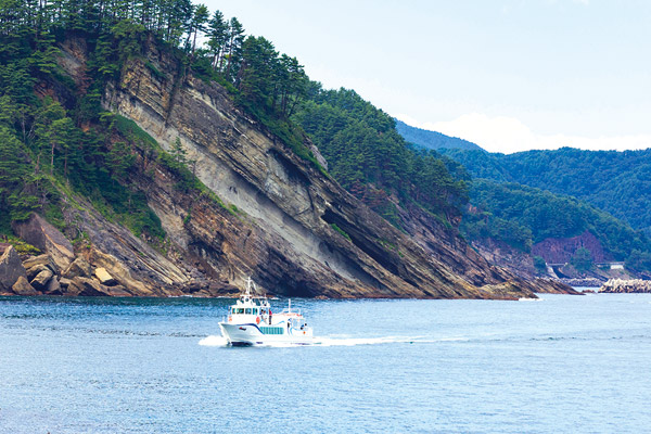 田野畑村の断崖美は、展望台から眺めるだけではもったいない。船上からしか見られない、ハイペ・コイコロべ海岸の地層や、弁天崎、矢越崎の岩穴など、次々と現れる見どころに目が離せません。
