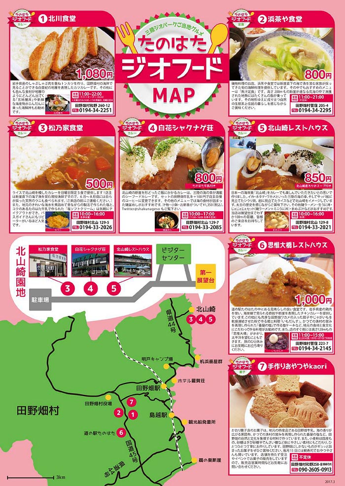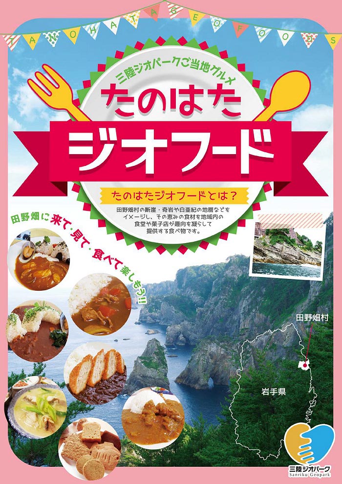 「三陸ジオパーク」の風景を模したカレーや、自慢の海で捕れる魚料理など、いろいろなジオフードを楽しんでください。