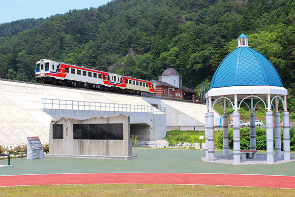 高さ120mの思惟大橋のたもとにある道の駅。遊具や芝生が広がるコミュ ...