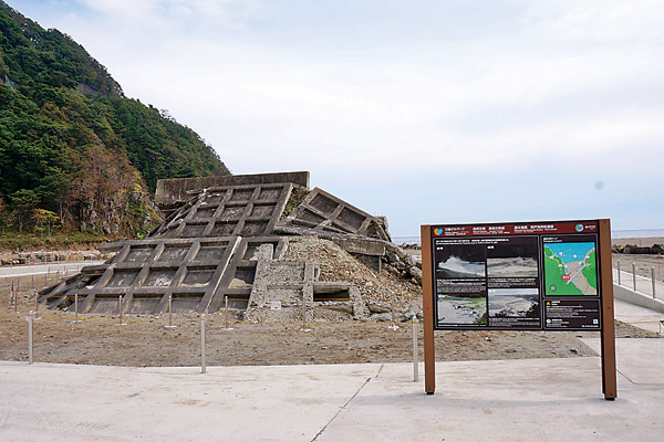 津波によって決壊した防潮堤が、被災当時の姿のままに保存されています ...