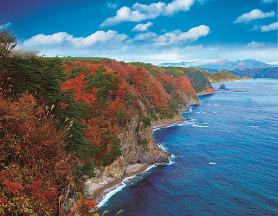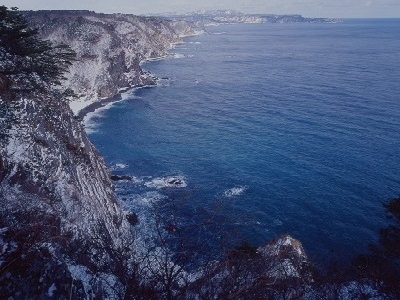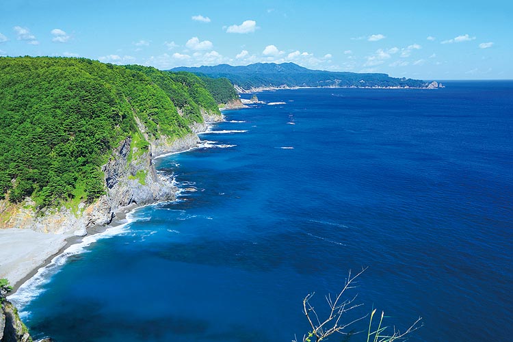 田野畑村の南端にある、なだらかな5連の断崖です。「鵜の巣断崖」の名は、崖の中腹にウミウの巣があることから名付けられました。